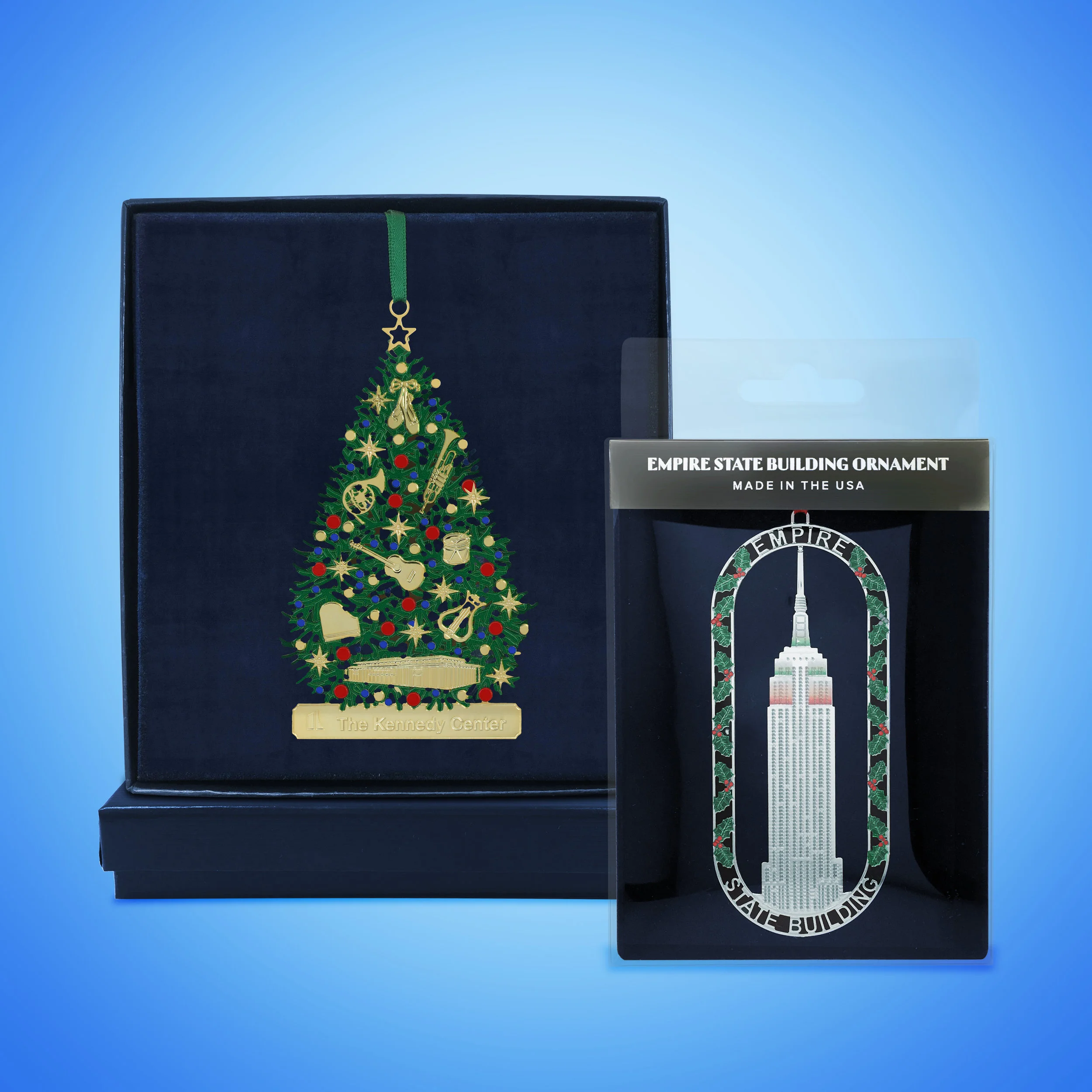 Our ornaments are enclosed in a handsome navy gift box with felt insert and information card. Also available is an acetate gift box for high volume stores.